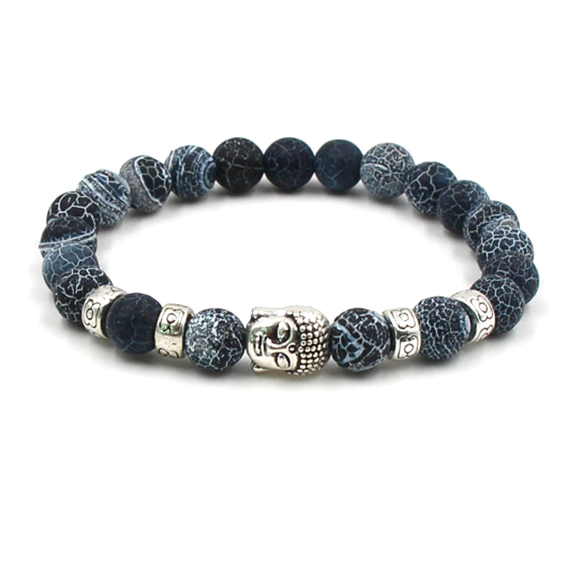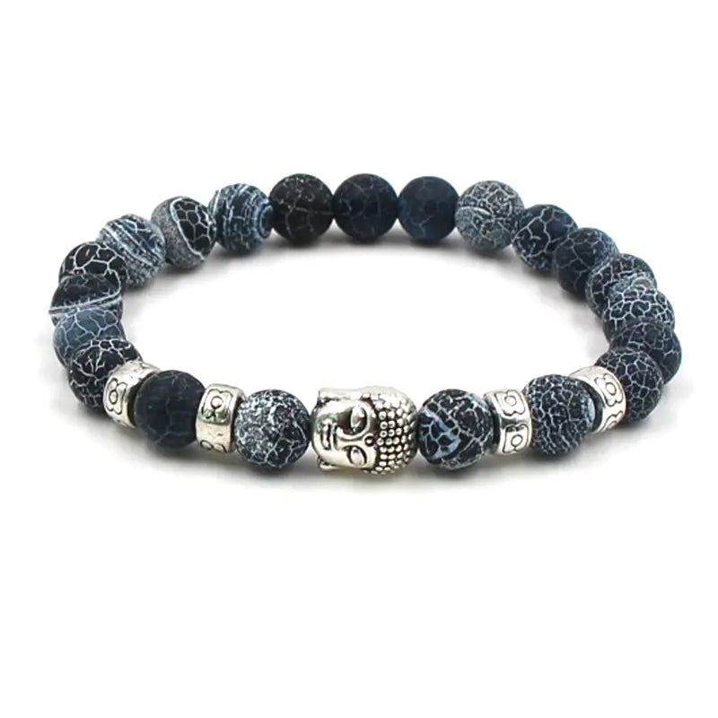 Natural Stone Agate Buddha Head Elastic Bracelet 8mm